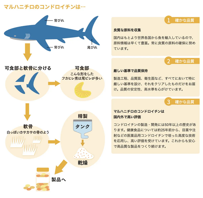 コンドロイチンはムコ多糖類(ネバネバ物質)の一種です。DHAと同様に、加齢とともに減少していくため中高年の方には特に意識してとっていただきたい成分。コラーゲンと一緒にとることをおすすめします。