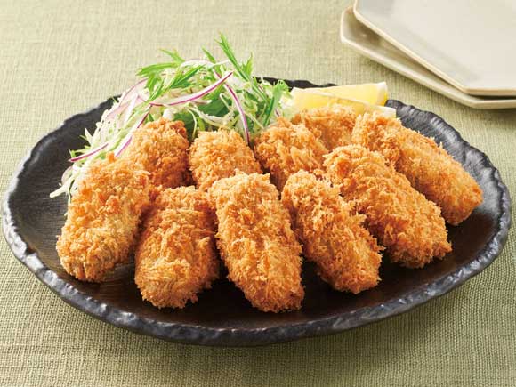 衣の中にはジューシーで大粒の地御前漁協の生産者限定の牡蠣を使用しており、ボリューム感が自慢です。毎日の食卓にも、人が集まるときのメニューにも最適です。