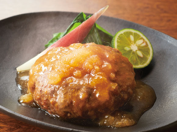 北海道産牛肉100%の贅沢ハンバーグ。さっぱりとした風味の自家製大根おろしソースが食欲をそそります。