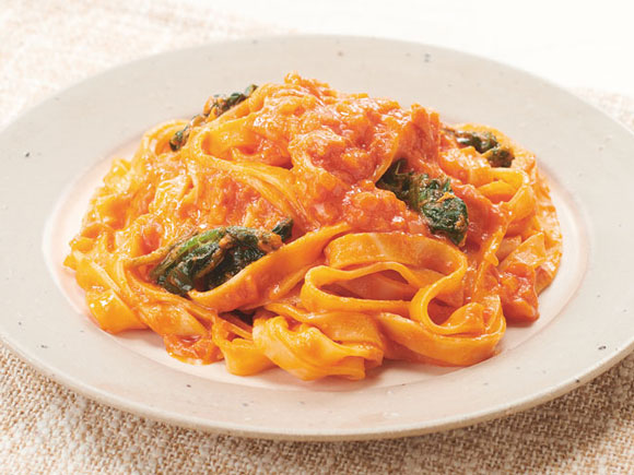 モチモチした幅広のパスタにソースがよく絡みます。具もたっぷり。お子様から大人まで、どなたにも楽しんでいただける味に仕上げました。
